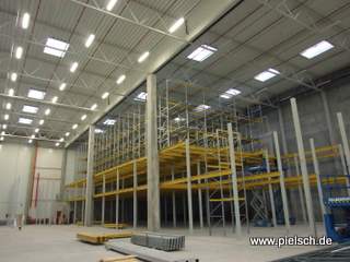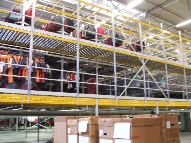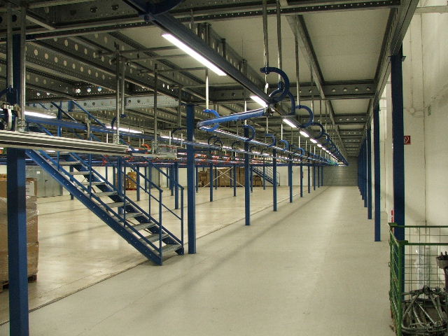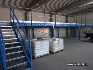 - Bühnen mit 3-geschossiger Hängeregalanlage, z. B. für Spediteure in der Textilbranche